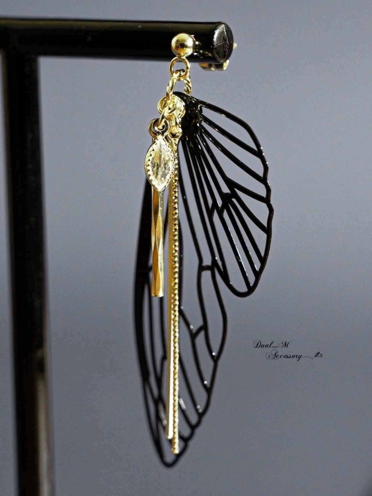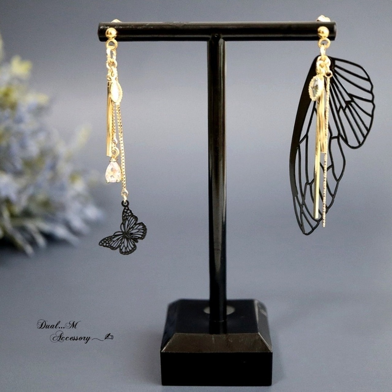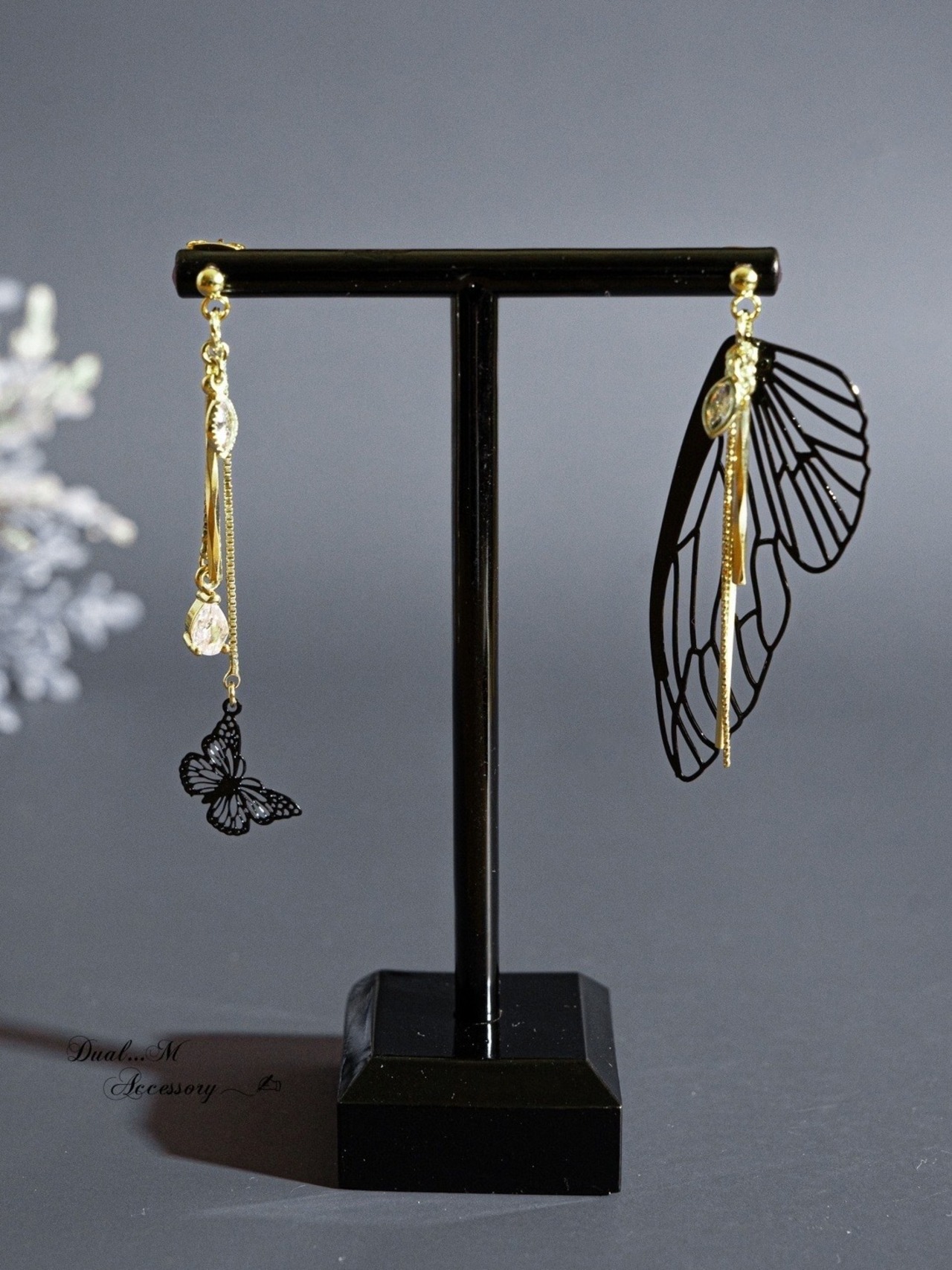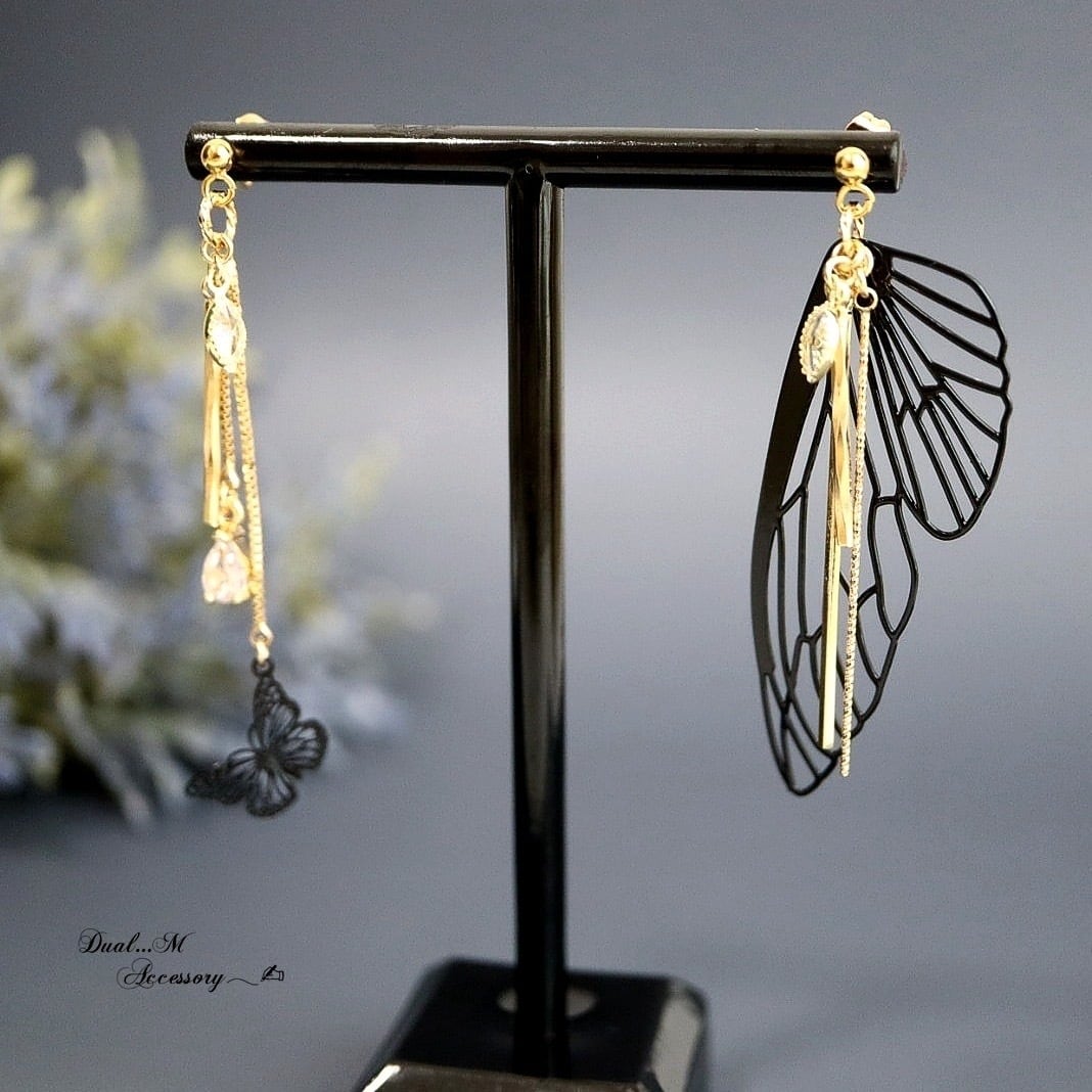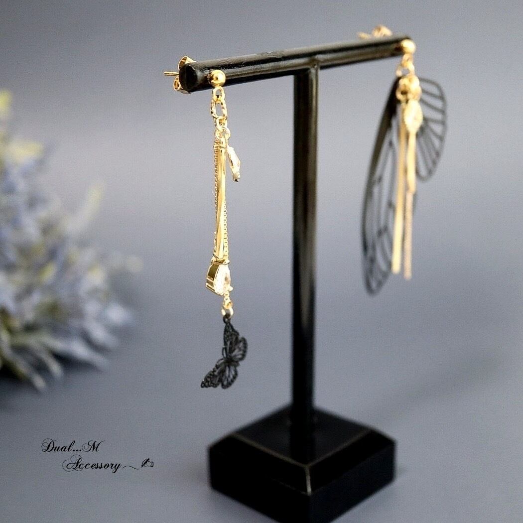 繊細な蝶のシルエットが耳元でひらりと舞う、存在感のあるピアス。