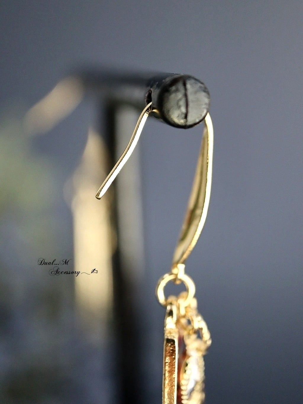 揺れるゴールドの装飾が、軽やかな動きを演出し、シンプルながら存在感のあるデザイン。