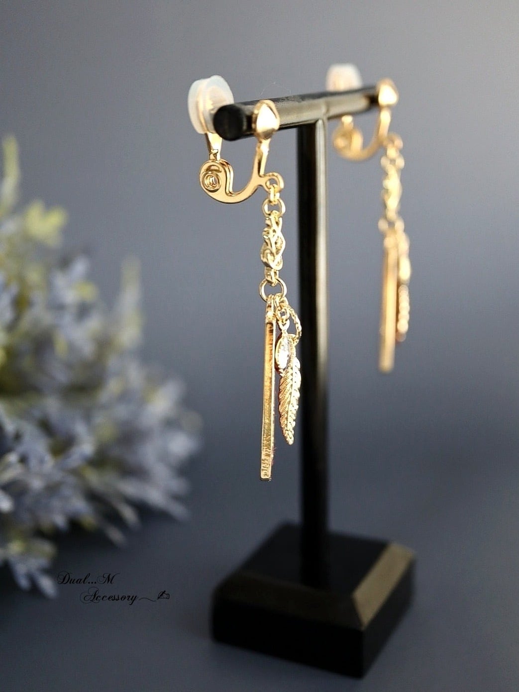 揺れるゴールドの装飾が、軽やかな動きを演出し、シンプルながら存在感のあるデザイン。