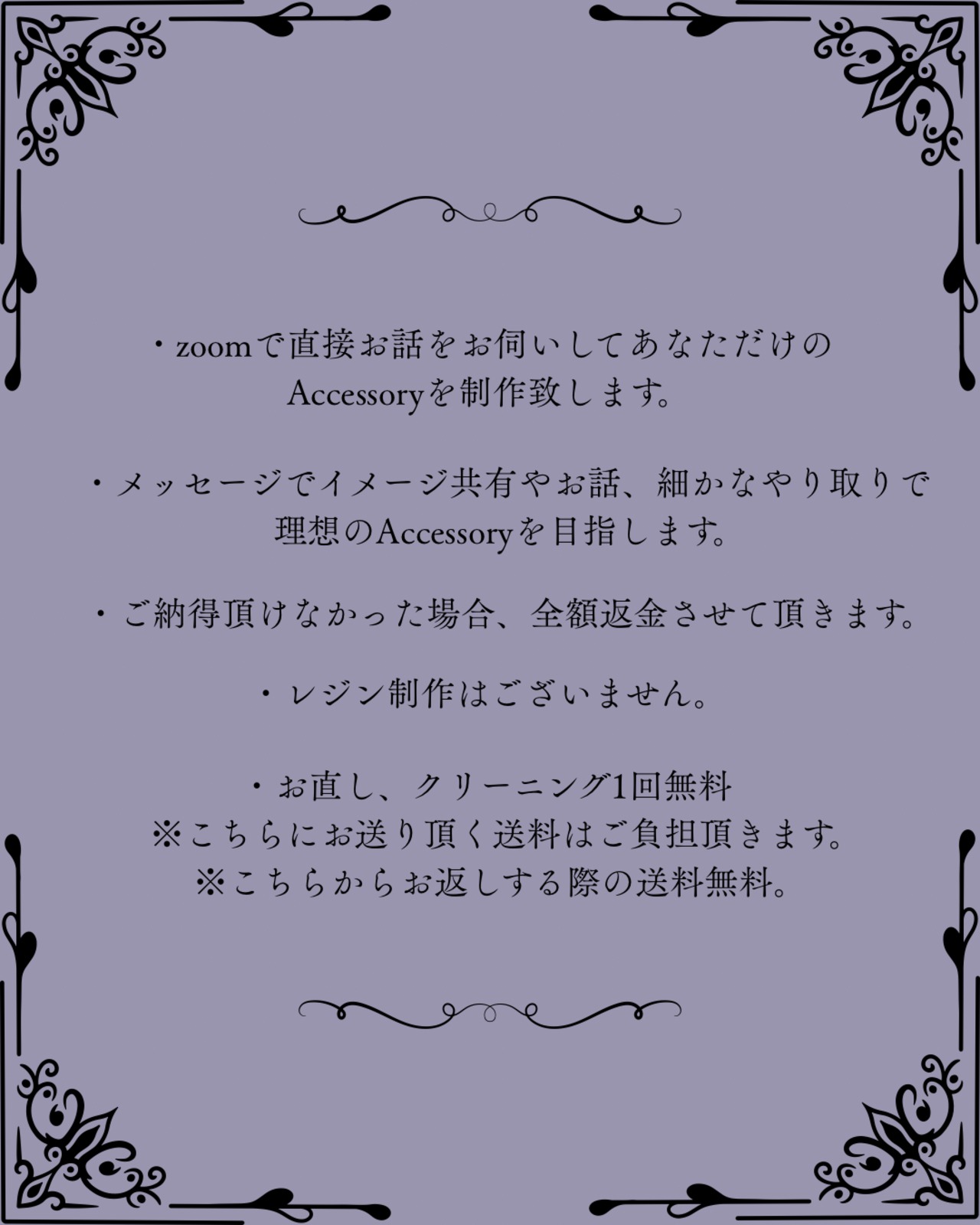 ・zoomで直接お話をお伺いしてあなただけのAccessoryを制作致します。