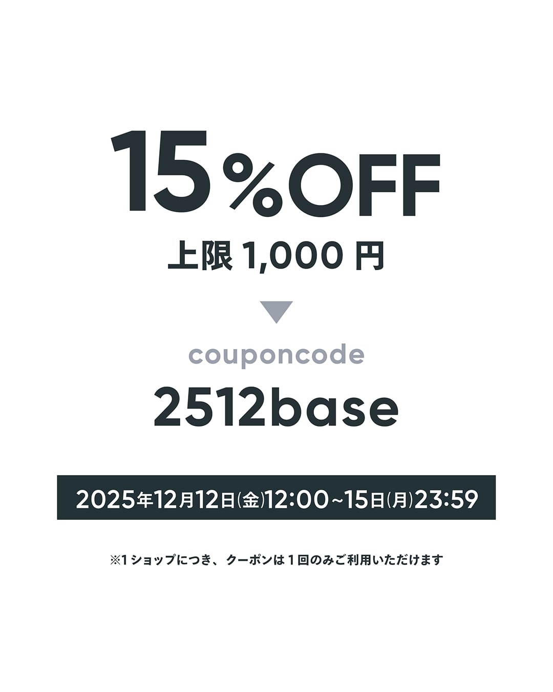 ・15%OFFクーポン(上限1,000円) クーポンコード:2512base
