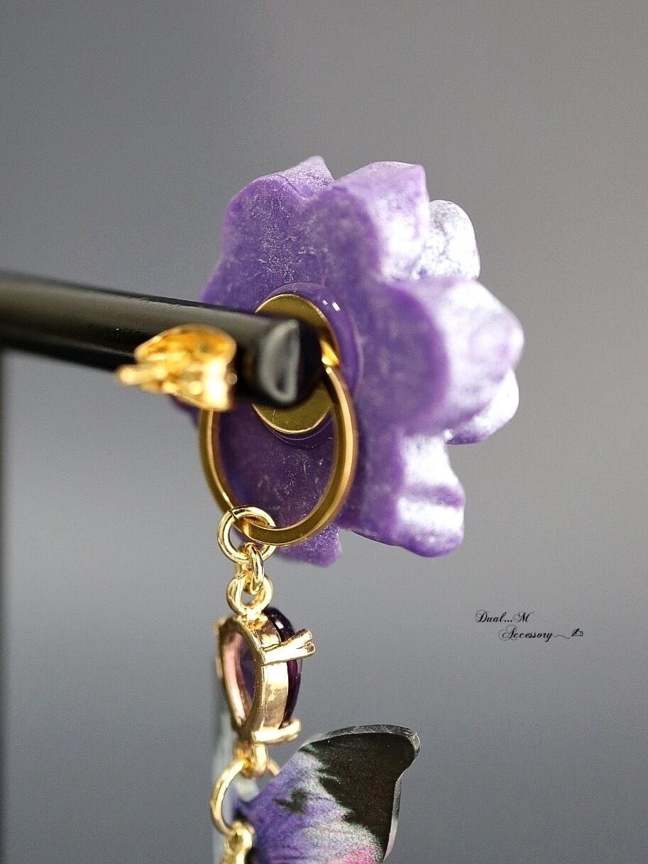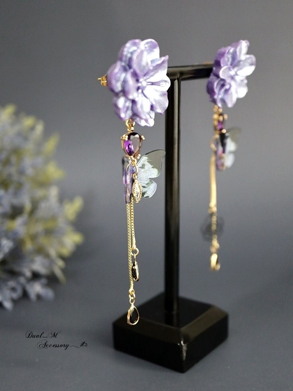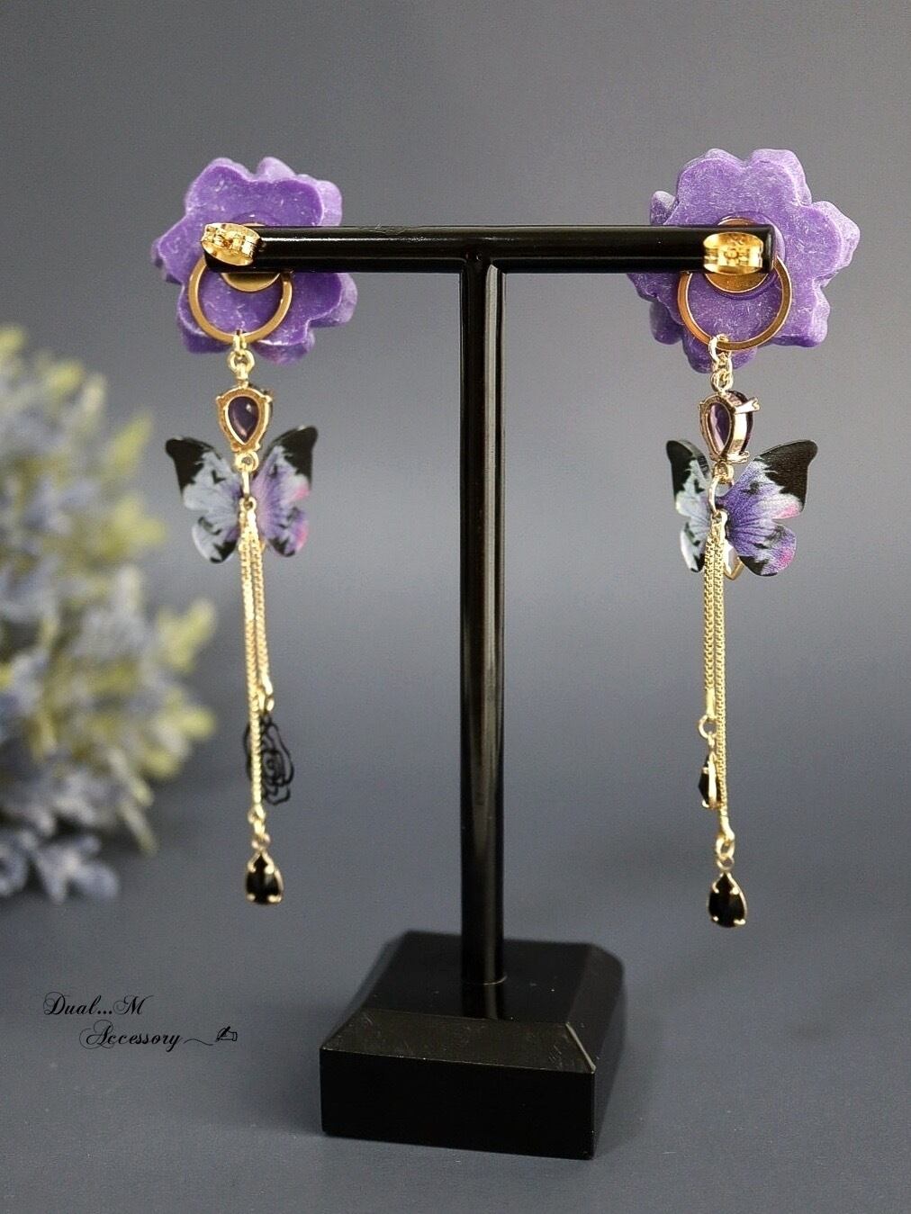 黒蝶とヴァイオレットが交差するような、静かで強い世界観を表現した耳飾り。