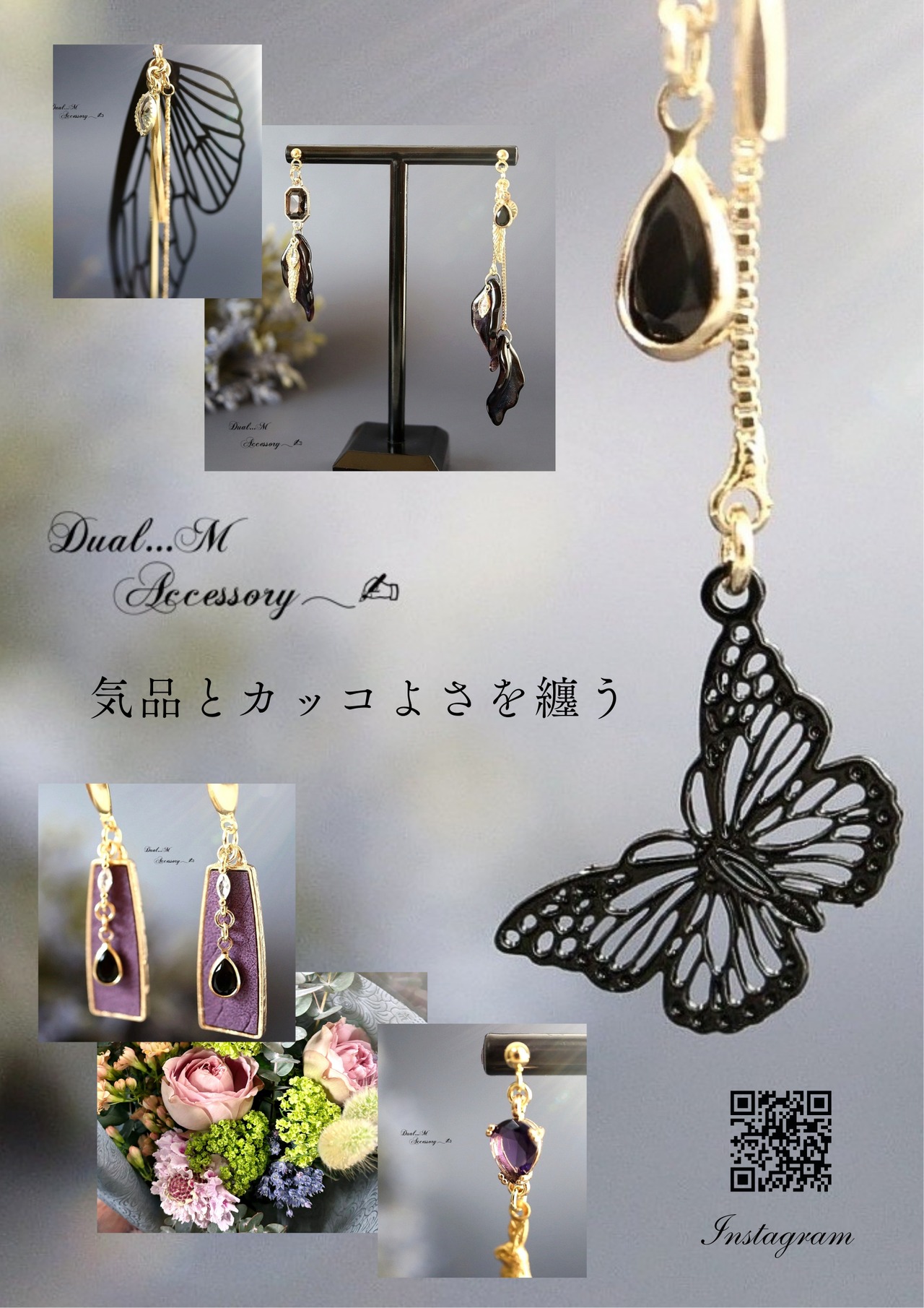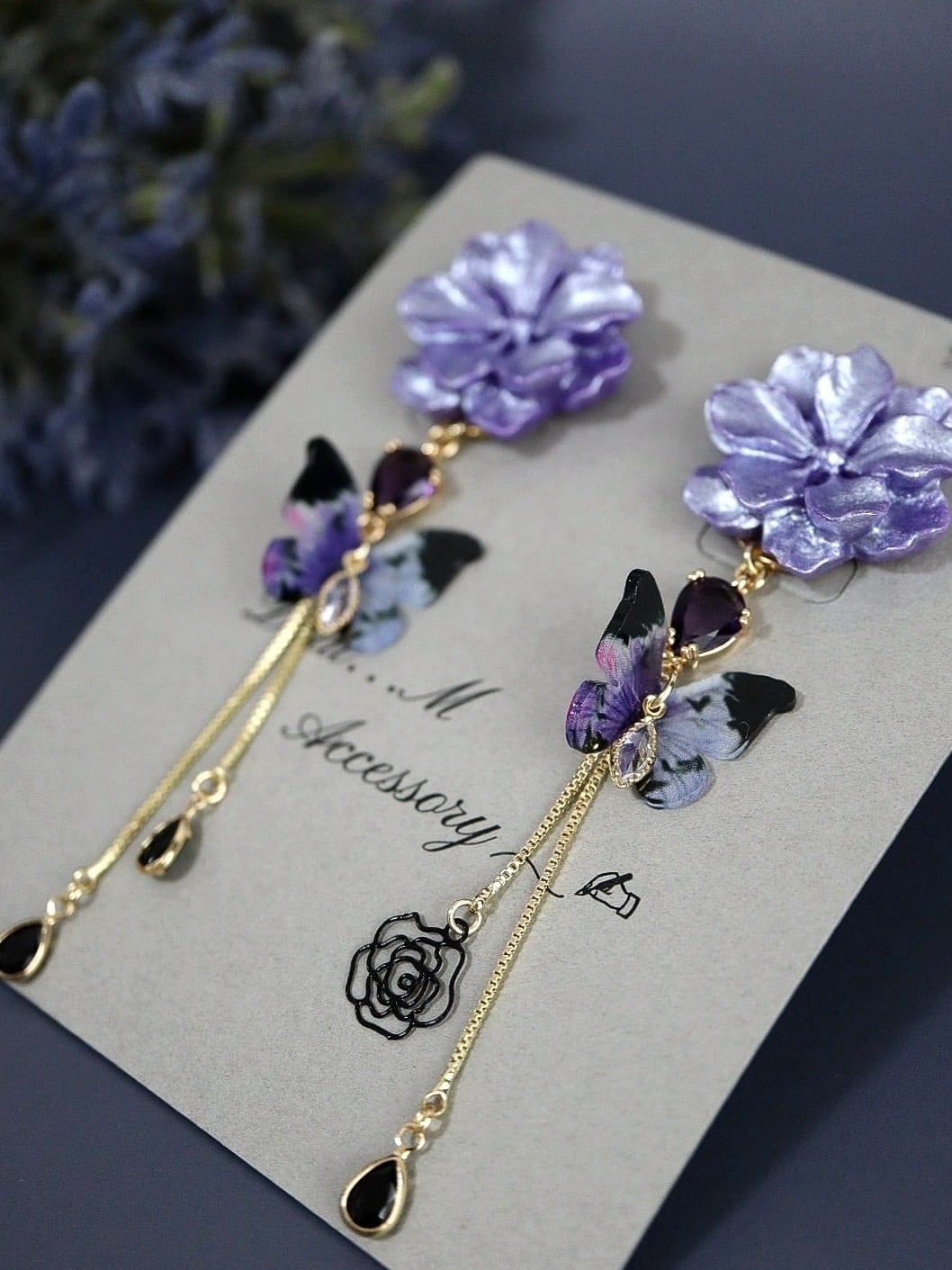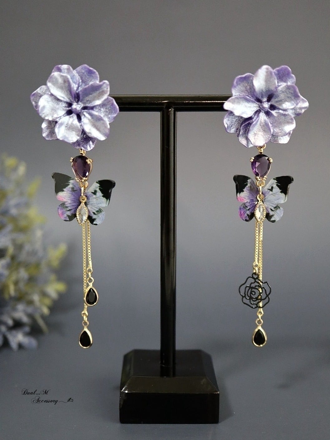 黒蝶とヴァイオレットが交差するような、静かで強い世界観を表現した耳飾り。