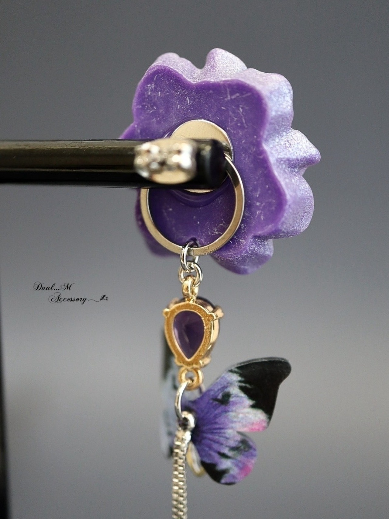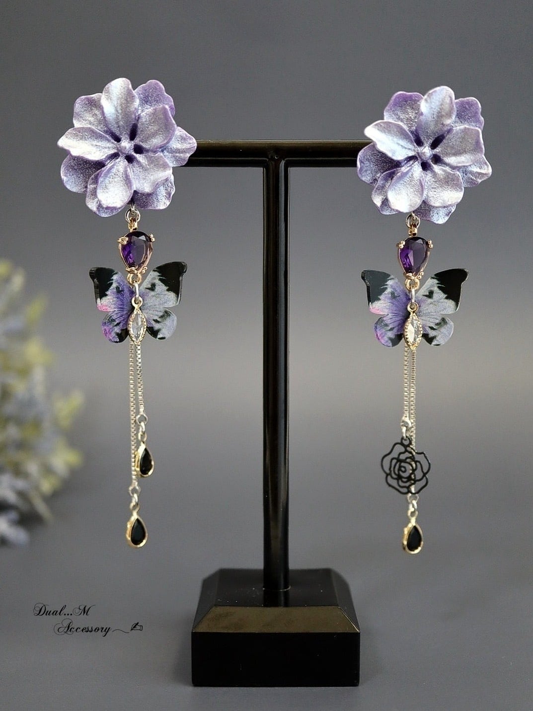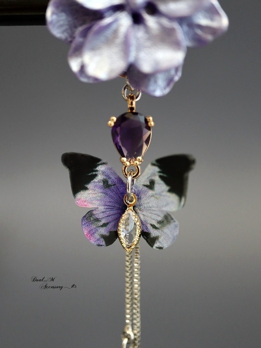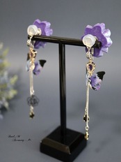 黒蝶とヴァイオレットが交差するような、静かで強い世界観を表現した耳飾り。