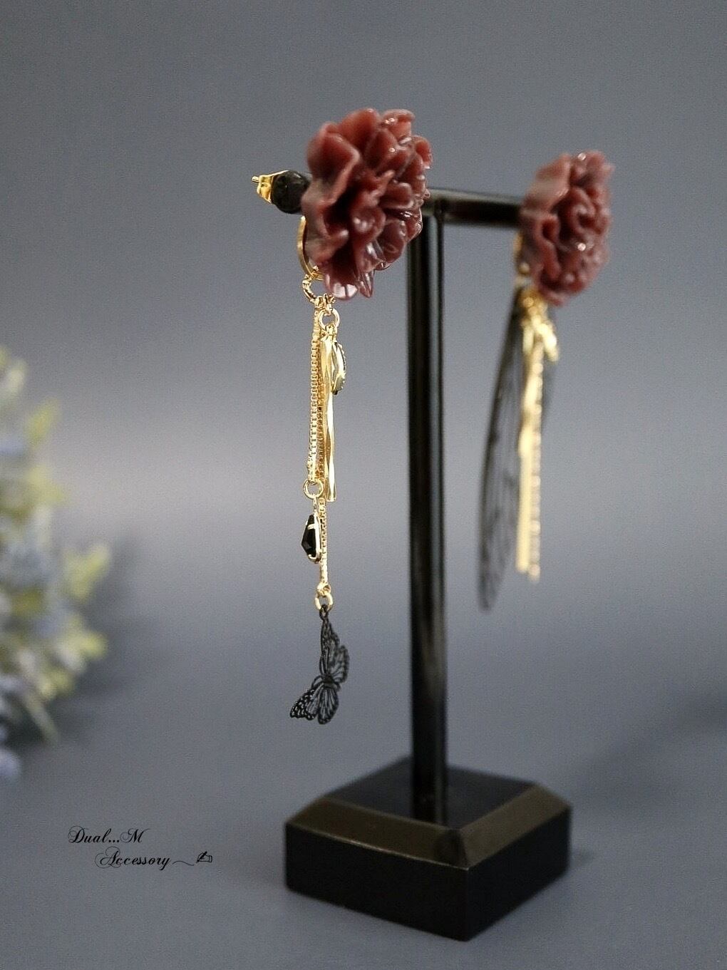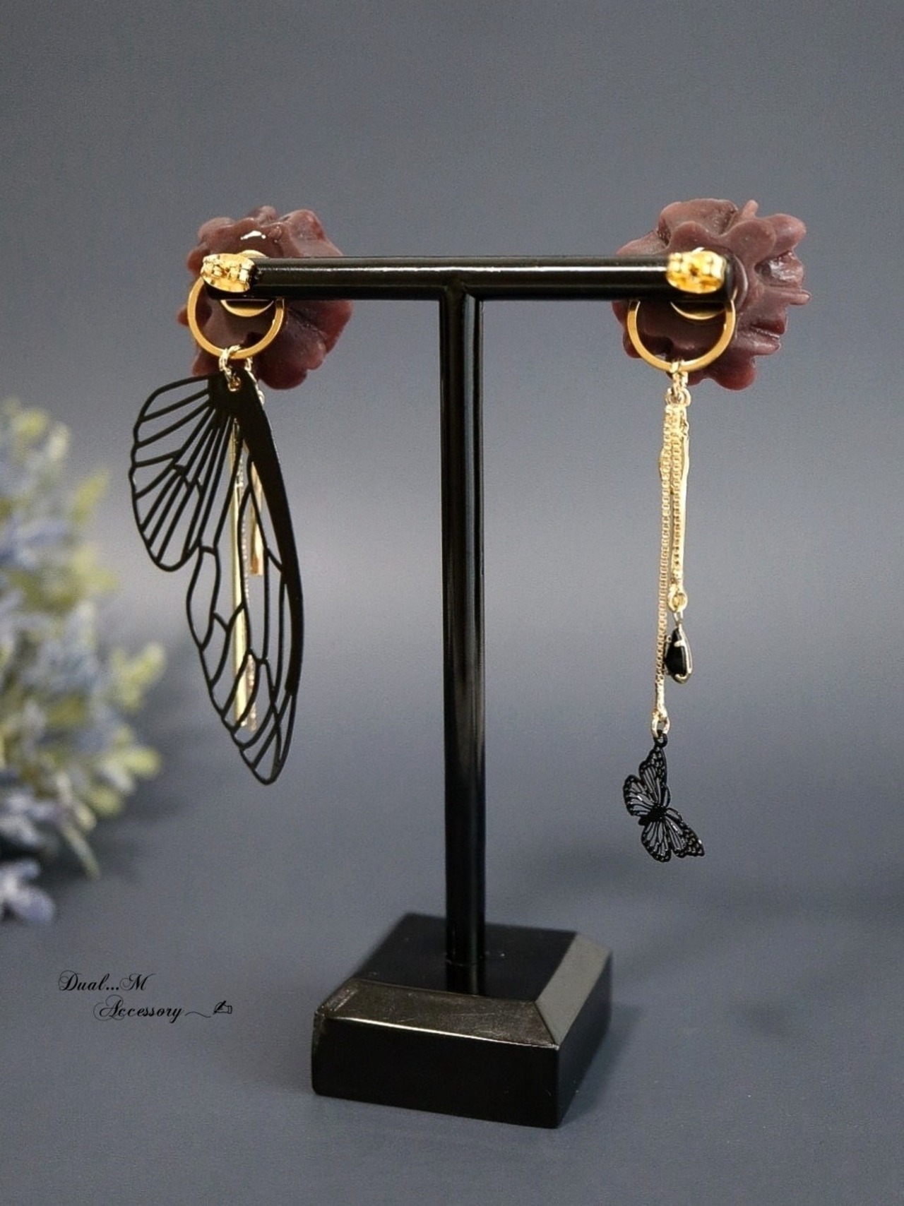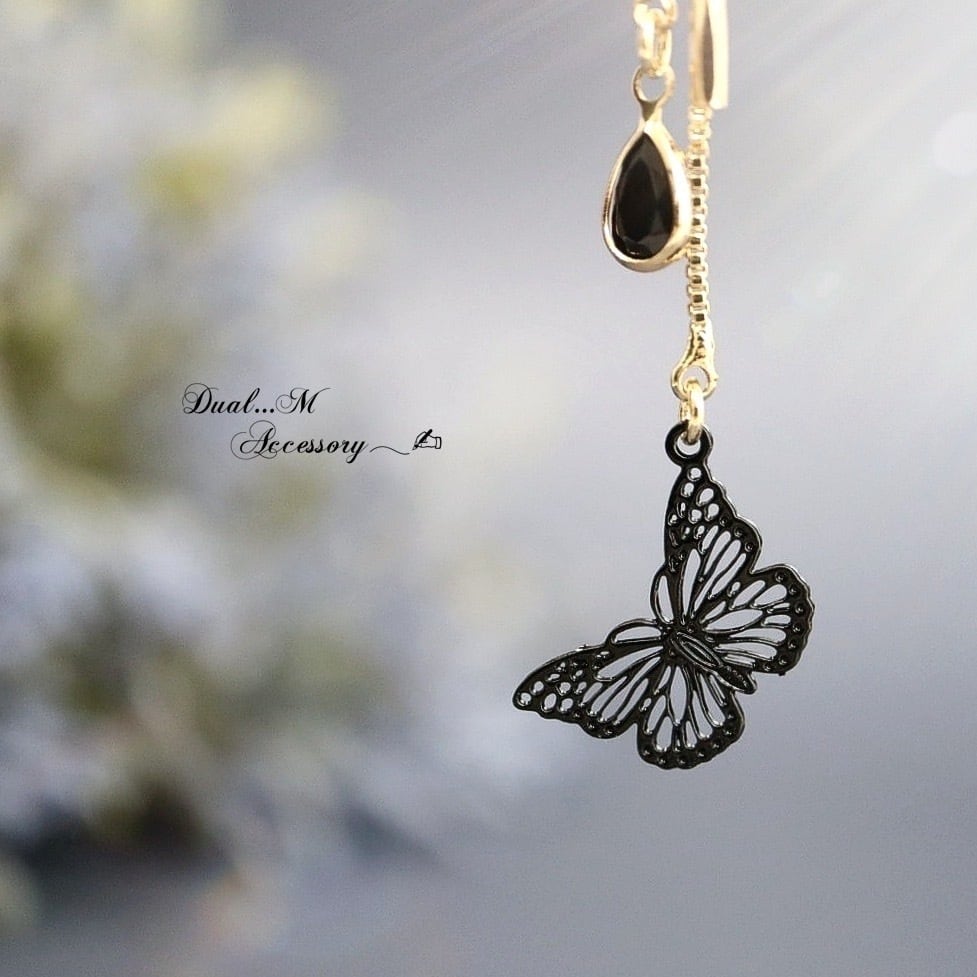 繊細な蝶のシルエットが耳元でひらりと舞う、存在感のあるピアス。