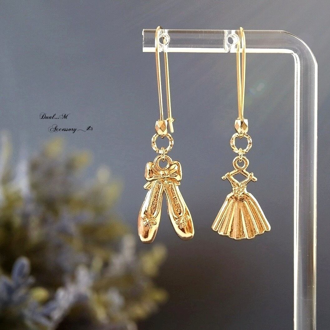 おしゃれなバレーシューズとワンピースのモチーフが普段のコーディネートを一瞬で華やかに彩ります。耳元に揺れるピアスは、女性らしさを引き立てるアイテムです。あなたの日常にちょっとした魔法を添えてくれることでしょう♩