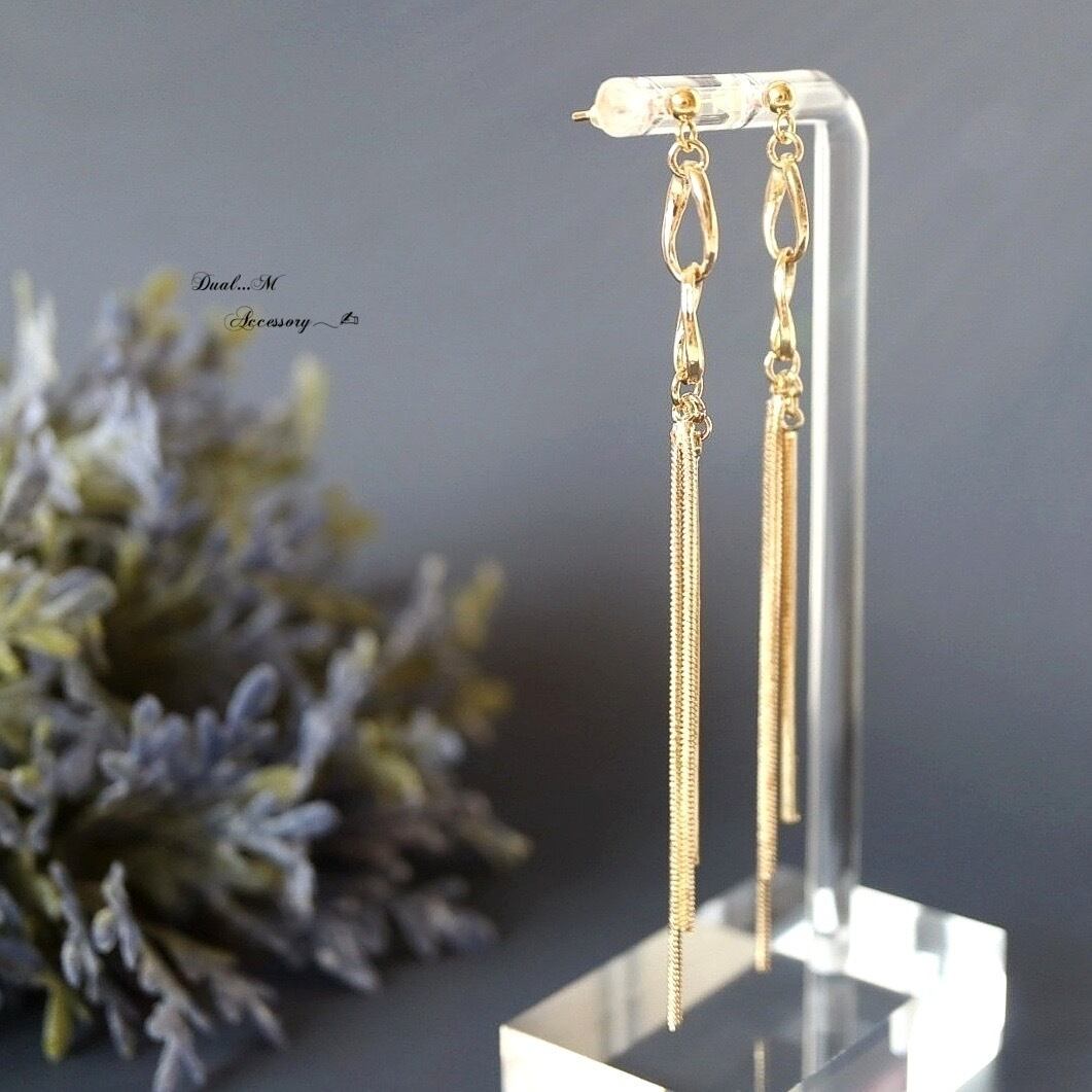 ゴールドのリングがエレガントな印象を醸し出し、優雅なドレープが揺れる度に輝きを放ちます。スタイリッシュでモダンなデザインは、あなたの個性を引き立て、輝きを加えてくれること間違いなしです。